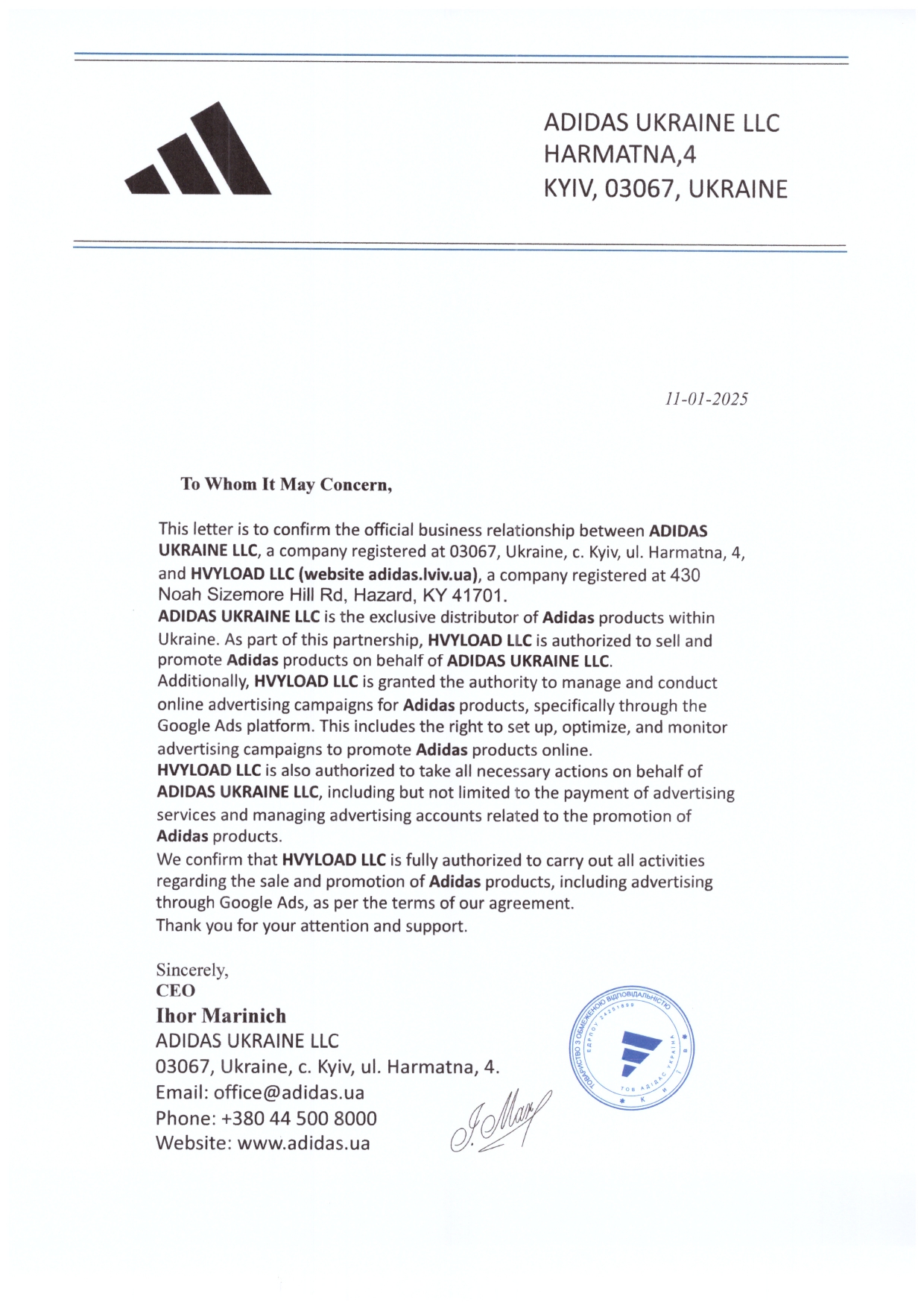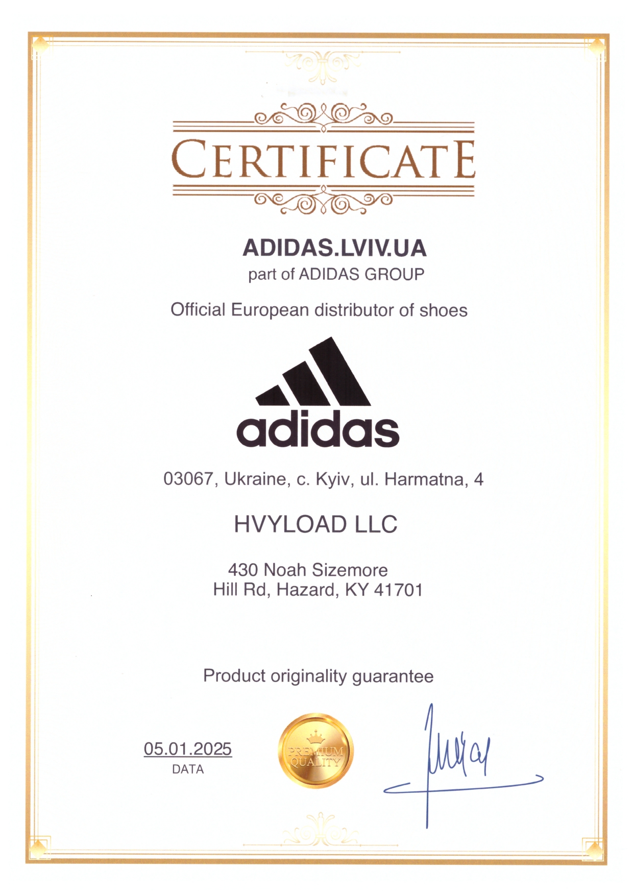 Adidas.lviv.ua спеціалізується на продажу оригінального взуття Adidas для повсякденного використання та спорту. Представлені сертифікати підтверджують офіційне походження товарів і їх відповідність стандартам бренду. Уся продукція проходить перевірку автентичності перед продажем.